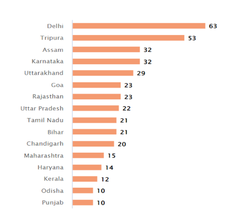 54% of all EV sales in India has been made only in 4 states. Uttar Pradesh is leading other states with a considerable edge over the others, with a 20% share of the overall sales, followed by Karnataka (13%), Tamil Nadu (11%) and Maharashtra (10%) which are in close proximity to one another. These rankings, though, are in isolation as it is limited to sale / registration of EVs only. The following graphic provides a ranking of electric vehicles sold as compared to 1000 non EVs sold and is indicative of the level of the opportunity in this space.
